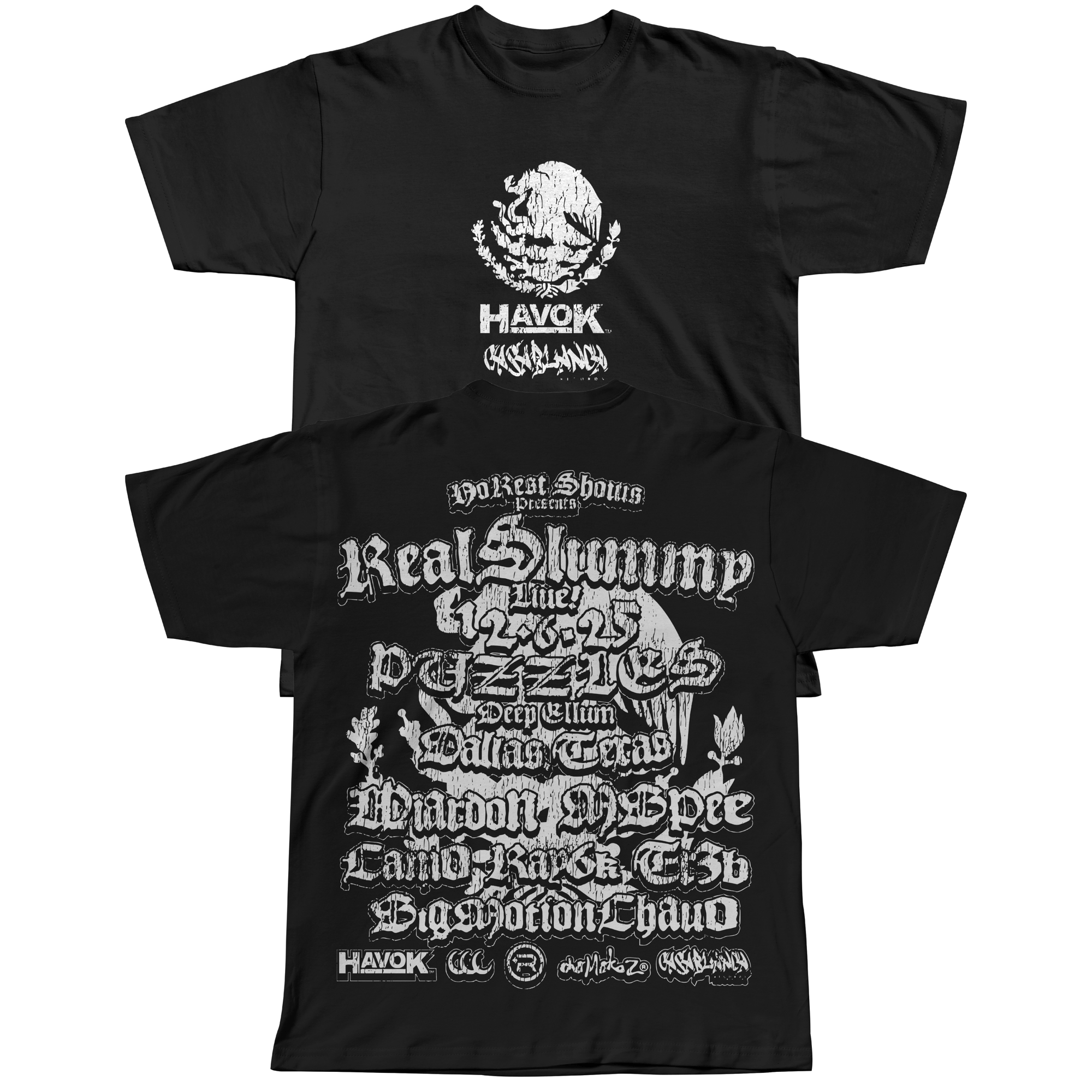 Event tee for Real Slummy's first headline show in Dallas, TX.
